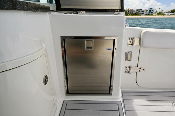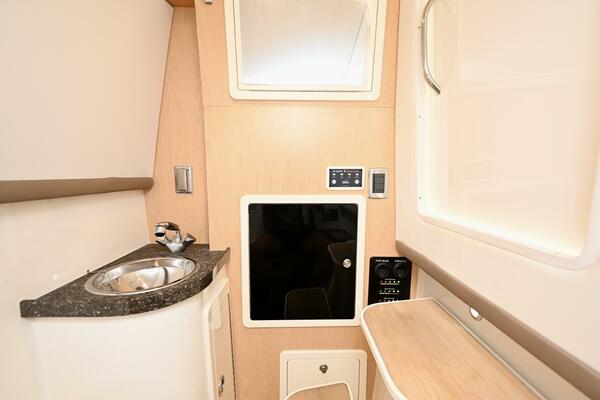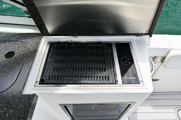 - Starboard Side Entertainment Center with Refrigerator, Sink, Electric Grill, and Utility Drawers
