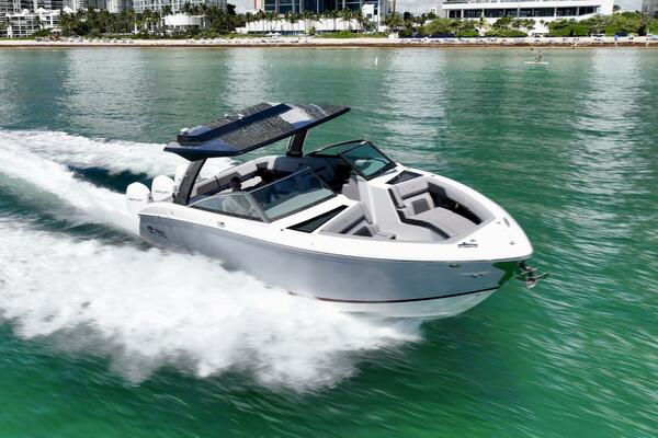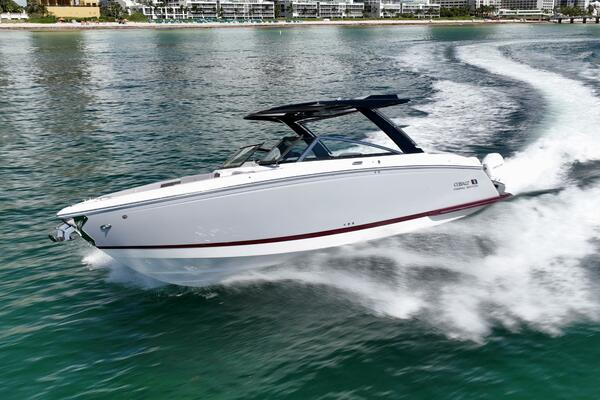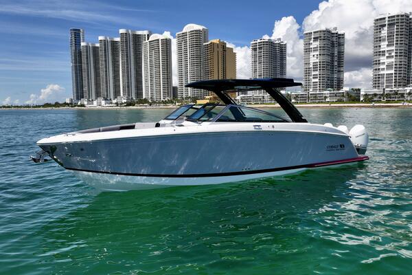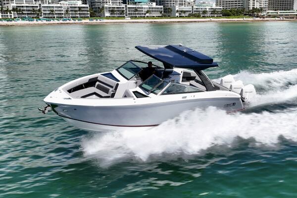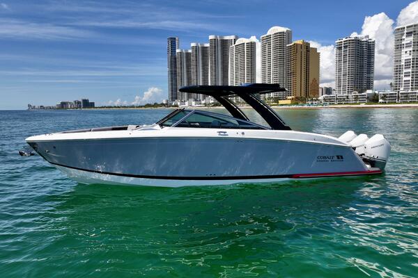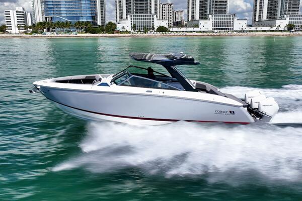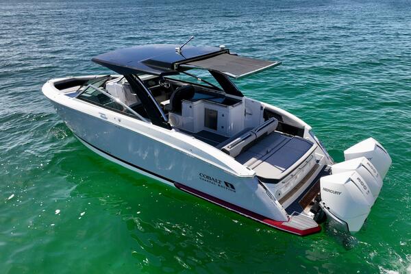 The R33 Cobalt delivers the perfect balance of performance, comfort, and versatility. Powered by triple 300hp Mercury outboards and equipped with an integrated joystick system, this vessel offers effortless handling and precise control—perfect for intracoastal cruising and tight marina docking. The sleek hardtop provides shade and style, while the spacious cockpit and bow areas feature plush seating for relaxing and entertaining. Below deck, you'll find a private stateroom and a well-appointed port-side head, adding comfort and convenience for longer days on the water. This R33 comes loaded with several upgraded options, including a premium Harman Kardon sound system that delivers rich, immersive audio throughout the vessel. Designed with attention to detail and built for confident handling, the R33 Cobalt is ideal for boaters seeking a refined, easy-to-operate platform for cruising and entertaining along the coast.