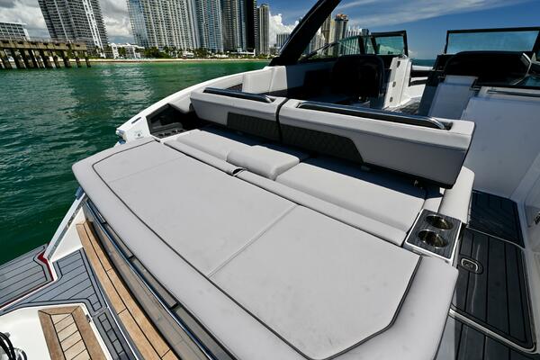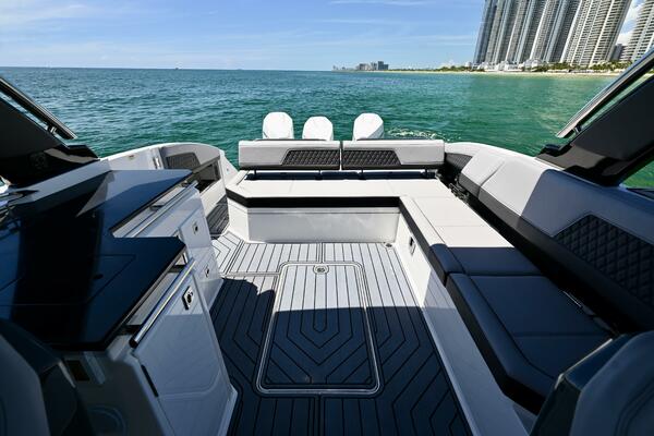 The R33 Cobalt is a premium day boat designed to deliver exceptional performance, comfort, and versatility. Powered by triple 300hp Mercury outboard engines, this vessel offers smooth acceleration and reliable power, making it ideal for cruising along the Intracoastal or venturing out for a day on the open water. The integrated joystick control system allows for intuitive handling, making docking and low-speed maneuvering incredibly easy—even for less experienced boaters.