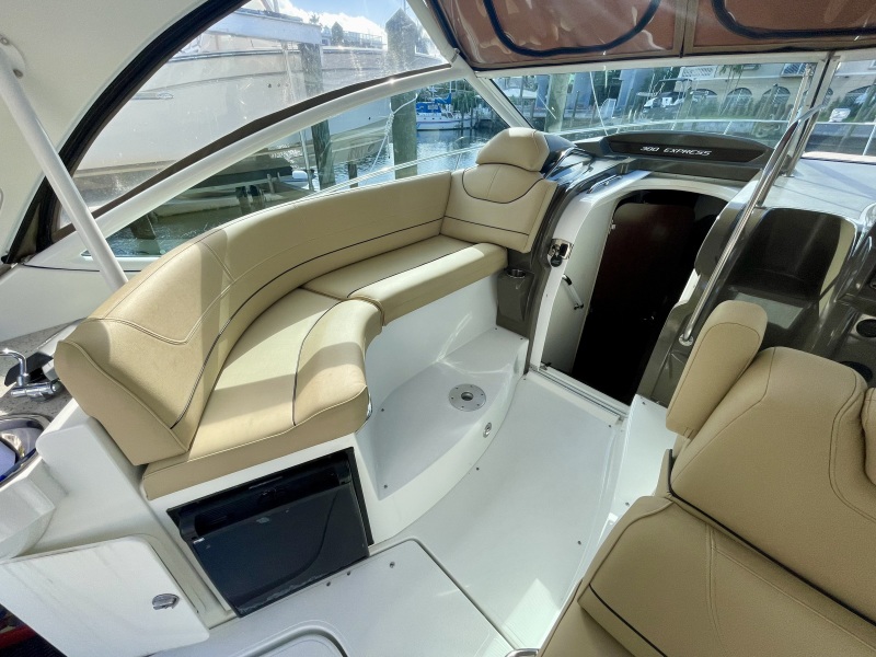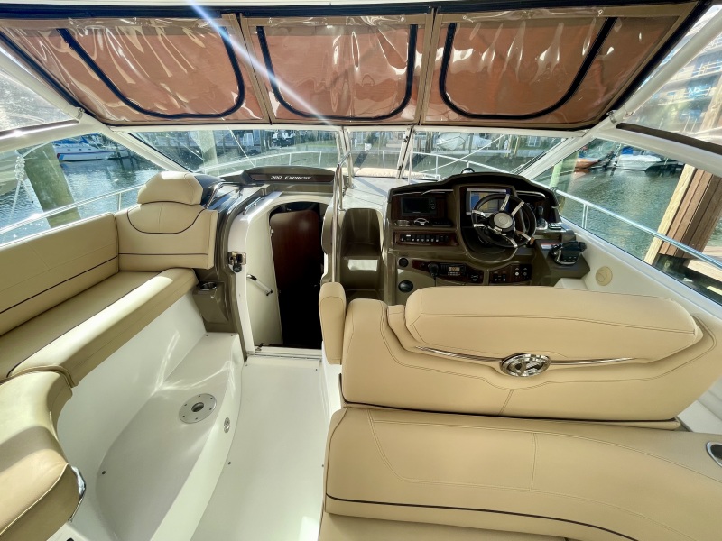 Low hour boat, consider the lively 380 Express your own personal time machine. Off the bow, the exuberant promise of your future. In the cockpit, those you care about the most fully absorbed in the luxury of the present. In your wake, the past and everything you're happy to leave behind. With unrivaled features, amenities and options the 380 takes you anyplace you want to be. Beam, performance, and layout is bigger and better than all the 'other' 38 models of the era... Joystick docking, hardtop, room for more than you think!
