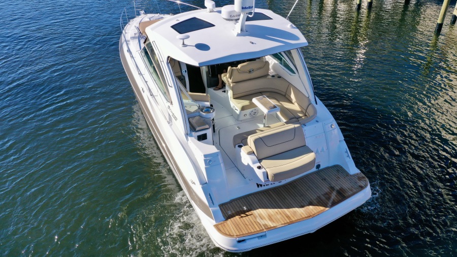 Low hour boat, consider the lively 380 Express your own personal time machine. Off the bow, the exuberant promise of your future. In the cockpit, those you care about the most fully absorbed in the luxury of the present. In your wake, the past and everything you're happy to leave behind.