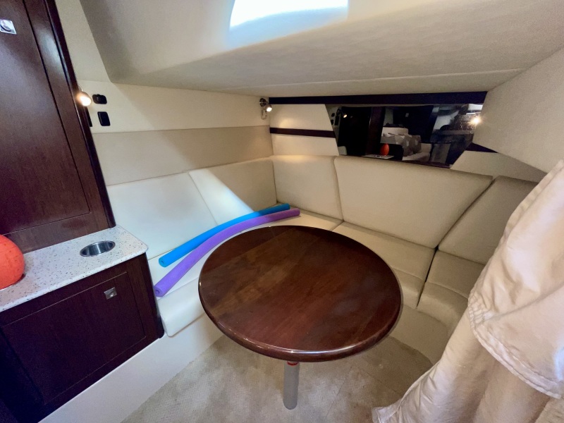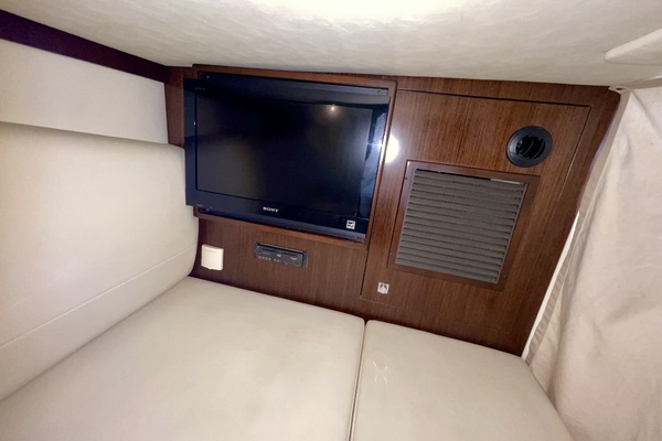 The cozy, yet spacious aft berth can be used for guest sleeping accommodations or extra seating with the stowed table and its own optional TV/DVD combo.