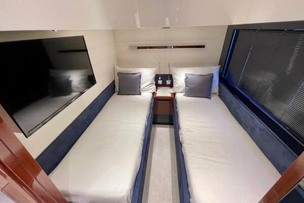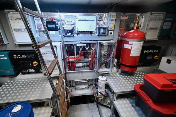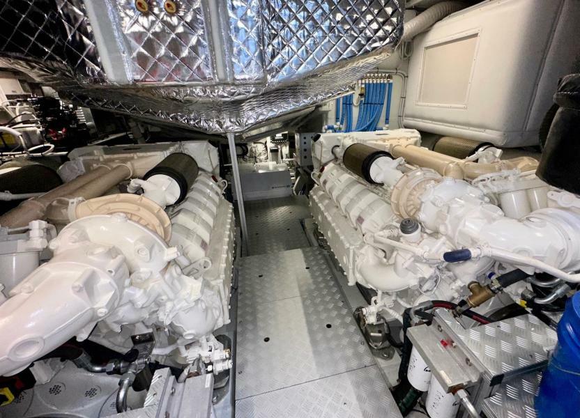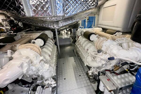 Powered by twin MAN V12-1550 diesel engines, Maximus delivers impressive performance on the water. She reaches exhilarating speeds, making her perfect for both leisurely cruising and adventurous journeys. The engine room is equipped with the latest in marine technology, ensuring reliability and efficiency. Additionally, her paint is in pristine condition, reflecting her meticulous maintenance and care.