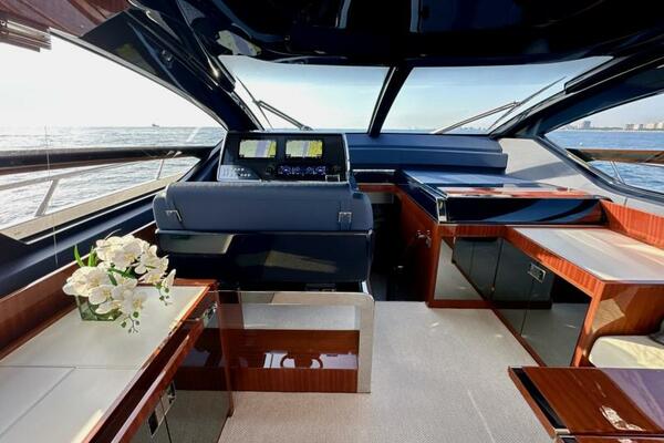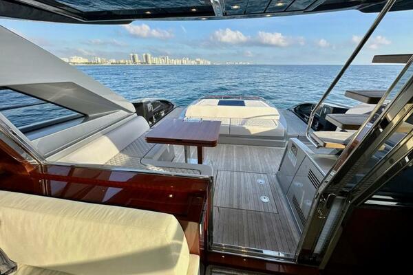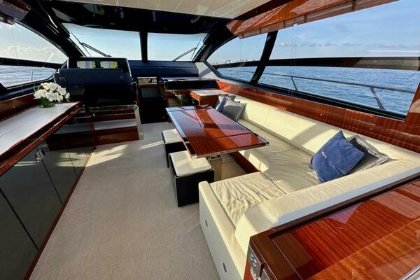 Step aboard Maximus, a pristine 66ft Riva 2022 Ribelle located in Fort Lauderdale, and experience the pinnacle of luxury yachting. As you step onto the inviting swim platform, ascend the stairs past a large centerline sun pad to the spacious aft cockpit area, featuring comfortable seating around a sleek dining table. This area is perfect for alfresco dining and lounging with friends and family while enjoying breathtaking views.