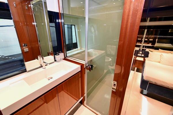 - Access to the swim platform via fiberglass steps, footboard teak-laid and courtesy lights