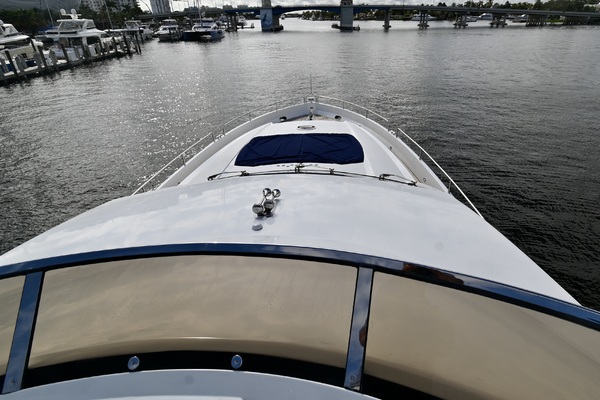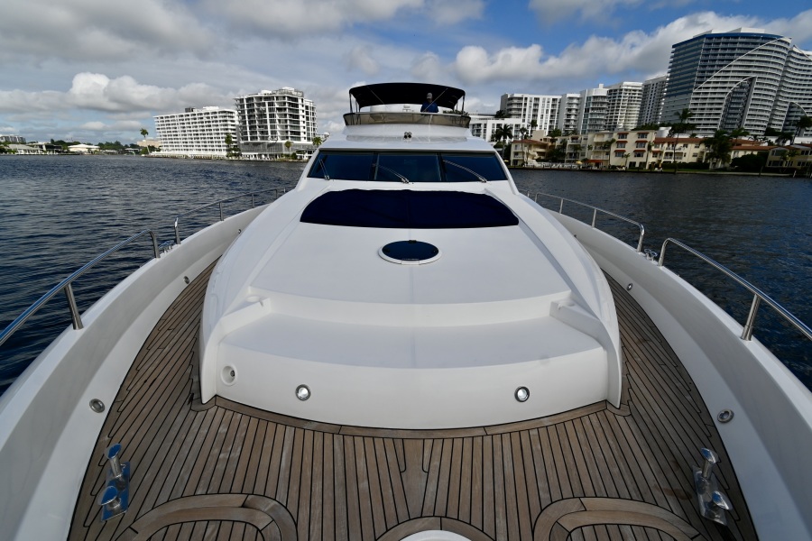 Access to the bridge, main salon and port and starboard bow is located here as well. The entire deck, side steps, and bridge deck are laid in teak.