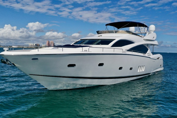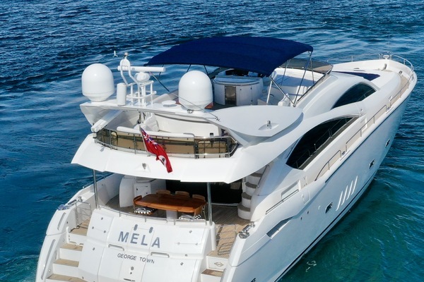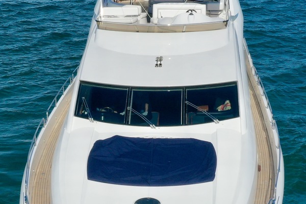 his stylish 82’ Sunseeker Yacht 2005 is ready to go cruising, he three spacious decks will provide you and your guests with an exceptional boating experience. Mela's main salon has plenty of natural light to illuminate the voluminous salon. Her galley has everything that a chef would wish for, full size fridge /freezer, 4 plate cook top, oven and dishwasher. Her spacious flybridge offers a wet-bar, BBQ, & spectacular panoramic views. The foredeck features comfortable sun pads & seating while the aft deck is perfect for al fresco dining. She is powered by Twin CAT C30 engines at 1550Hp each with only 1380 original engine hours providing performance and an exhilarating cruise up to 27 knots. Mela's accommodations include 4 staterooms plus crew. The master is a spacious and elegant stateroom that will welcome you for a wonderful nights rest. To port aft is a walk-in closet and vanity with stool on the starboard side is loveseat. The en-suit head shower is located aft of the master bed and features a large shower, granite floors and countertops. The VIP Stateroom which is forward in the bow area is exceptionally large and will overwhelm your special guests. The en-suite head features marble shower walls, granite floors and countertops. The suite also has a large walk-in closet. There two double berth stateroom each with their on ensuite head and shower Twin CAT C30 Low Engine Hours only 1380 hrs Low generator hours New Teak Atlas Shore Power converter Hydraulic Bow and Stern Thruster