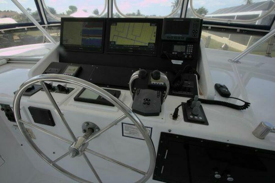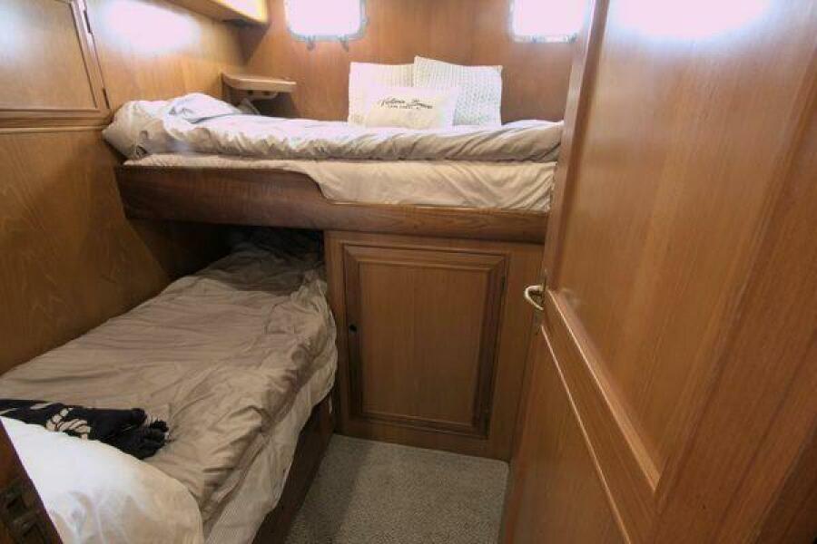 Olympic queen size berth, raised pilothouse with internal stairs to the flybridge and 5'8" headroom in the engine